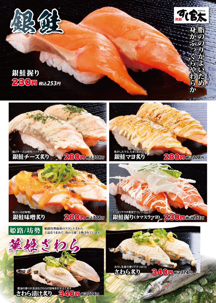鮭握り 230円(税込253円)脂ののりがよいため、身がふっくらやわらかです。