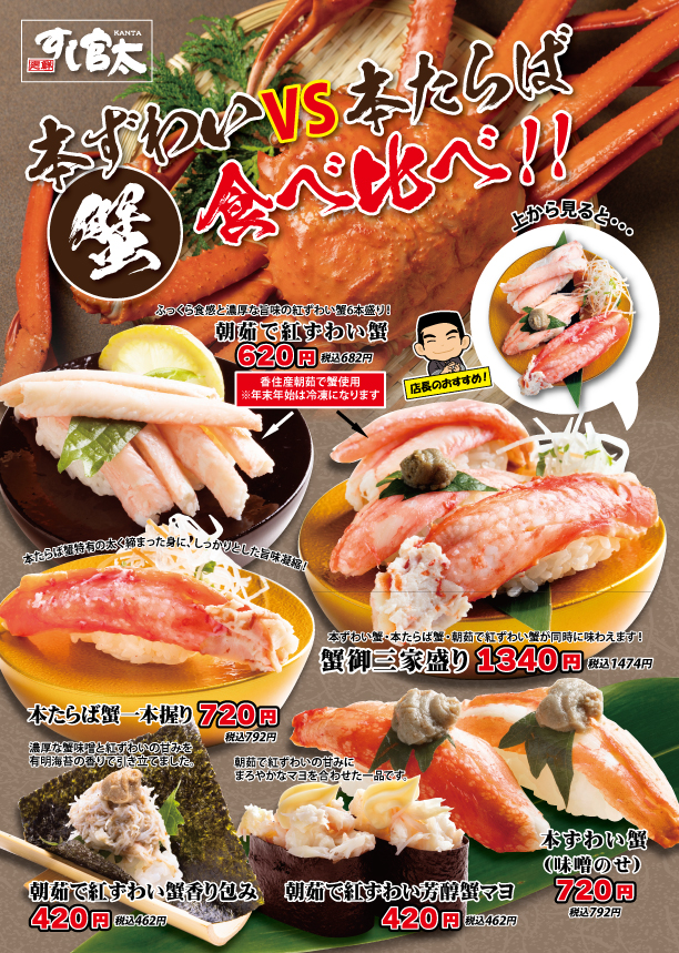 本ずわい蟹と本たらば蟹食べ比べてください。